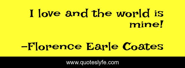 "Florence Earle Coates Quotes." Quoteslyfe.com, 2025. Sat. 06 Dec. 2025. <https://www.quoteslyfe.com/quote/I-love-and-the-world-is-mine-267275>.