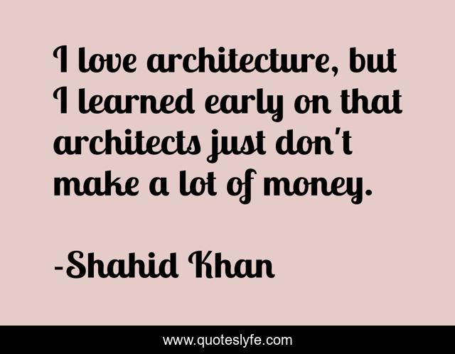 "Shahid Khan Quotes." Quoteslyfe.com, 2025. Fri. 05 Dec. 2025. <https://www.quoteslyfe.com/quote/I-love-architecture-but-I-learned-early-299516>.