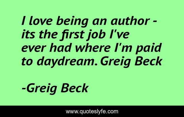 This page presents the quote "I love being an author - its the first job I've ever had where I'm paid to daydream. Greig Beck". Author of this quote is Greig Beck. This quote is about greig-beck, author, writing,.