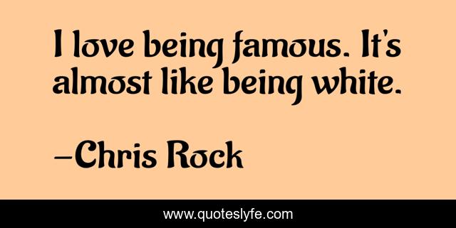 This page presents the quote "I love being famous. It's almost like being white.". Author of this quote is Chris Rock. This quote is about white, love, like, affection,.