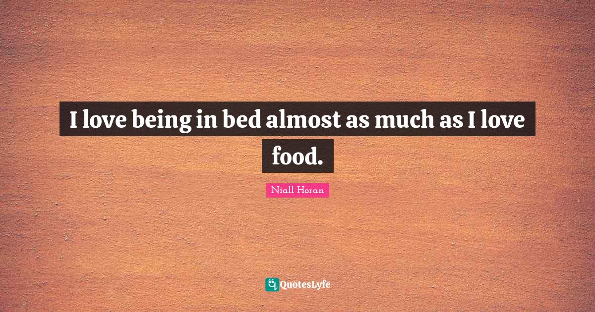 This page presents the quote "I love being in bed almost as much as I love food.". Author of this quote is Niall Horan. This quote is about affection, bed, love, love is, i love food,.