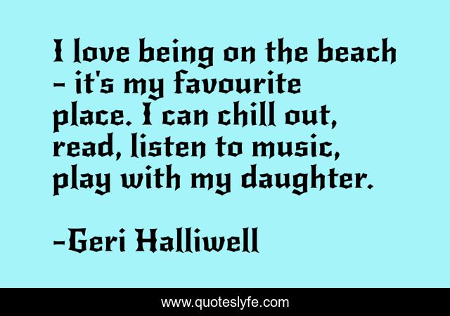 This page presents the quote "I love being on the beach - it's my favourite place. I can chill out, read, listen to music, play with my daughter.". Author of this quote is Geri Halliwell. This quote is about beach, daughter, music,.