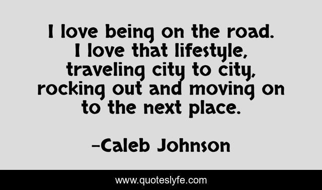 This page presents the quote "I love being on the road. I love that lifestyle, traveling city to city, rocking out and moving on to the next place.". Author of this quote is Caleb Johnson. This quote is about moving on, moving, road,.