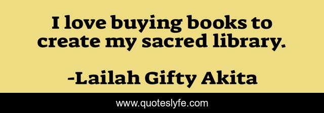 This page presents the quote "I love buying books to create my sacred library.". Author of this quote is Lailah Gifty Akita. This quote is about self-study, lailah-gifty-akita-affirmations, book-lovers, library, reading, education,.