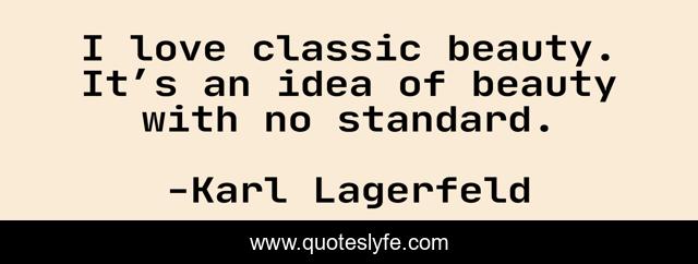 This page presents the quote "I love classic beauty. It’s an idea of beauty with no standard.". Author of this quote is Karl Lagerfeld. This quote is about life, love, look, taste, image, creativity, idea, standard, classic-beauty,.
