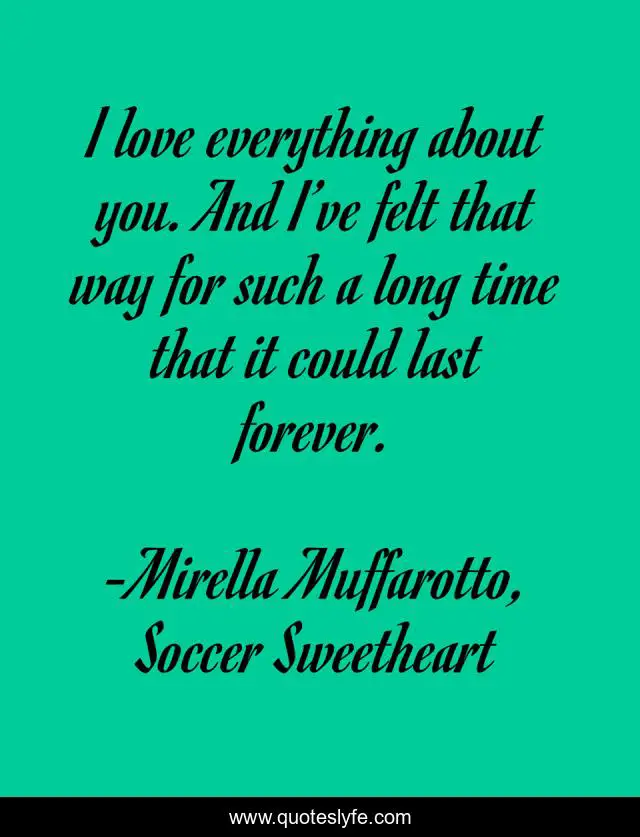 "Mirella Muffarotto, Soccer Sweetheart Quotes." Quoteslyfe.com, 2025. Mon. 08 Dec. 2025. <https://www.quoteslyfe.com/quote/I-love-everything-about-you-And-I-107072>.