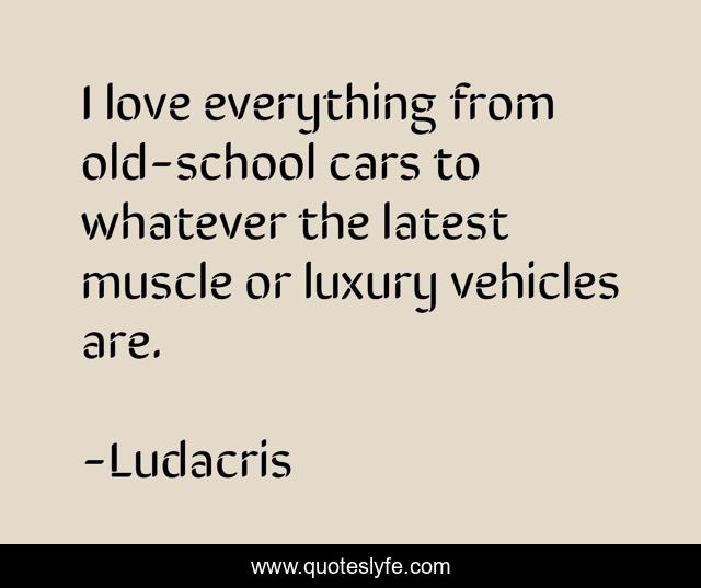 This page presents the quote "I love everything from old-school cars to whatever the latest muscle or luxury vehicles are.". Author of this quote is Ludacris. This quote is about whatever, love, luxury, affection,.