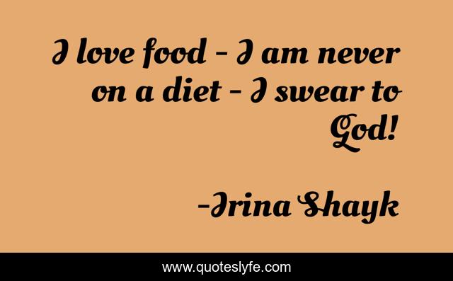 This page presents the quote "I love food - I am never on a diet - I swear to God!". Author of this quote is Irina Shayk. This quote is about food, god, love, affection,.