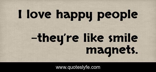 "they’re like smile magnets. Quotes." Quoteslyfe.com, 2025. Mon. 08 Dec. 2025. <https://www.quoteslyfe.com/quote/I-love-happy-people-183182>.