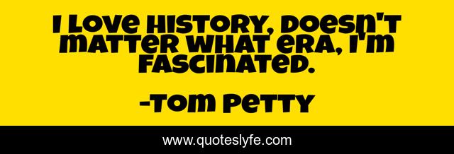 This page presents the quote "I love history, doesn't matter what era, I'm fascinated.". Author of this quote is Tom Petty. This quote is about matter, era, history,.