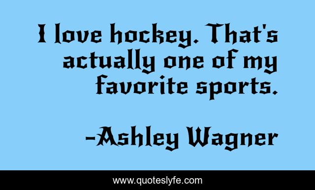 This page presents the quote "I love hockey. That's actually one of my favorite sports.". Author of this quote is Ashley Wagner. This quote is about love, favorite, hockey, affection,.