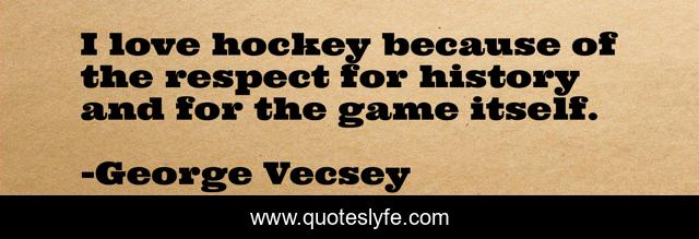 This page presents the quote "I love hockey because of the respect for history and for the game itself.". Author of this quote is George Vecsey. This quote is about love, hockey, affection, history,.
