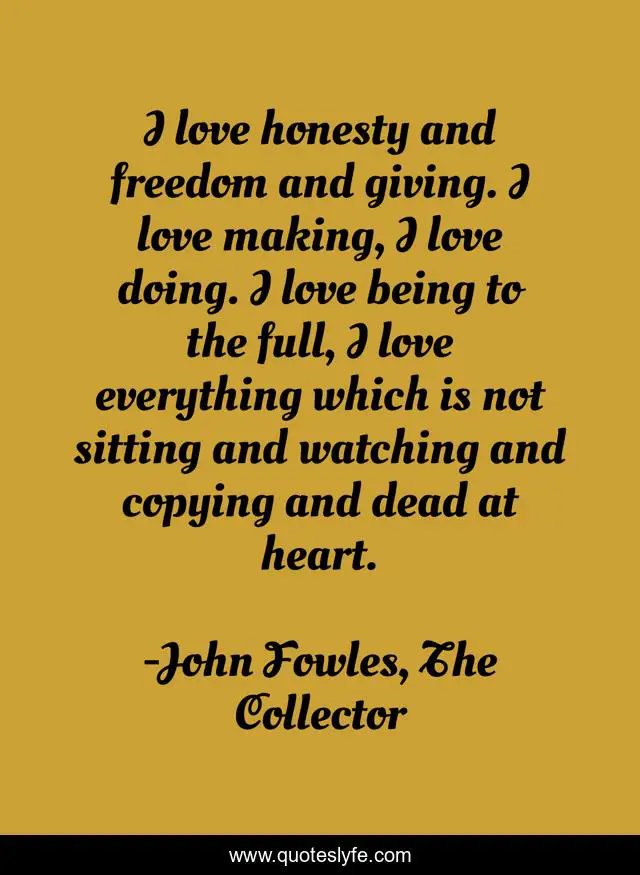 "John Fowles, The Collector Quotes." Quoteslyfe.com, 2025. Sat. 06 Dec. 2025. <https://www.quoteslyfe.com/quote/I-love-honesty-and-freedom-and-giving-105559>.