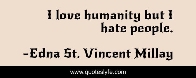 This page presents the quote "I love humanity but I hate people.". Author of this quote is Edna St. Vincent Millay. .