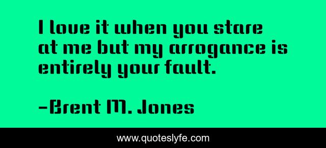 This page presents the quote "I love it when you stare at me but my arrogance is entirely your fault.". Author of this quote is Brent M. Jones. This quote is about stare, love-your-staring, arrogance, staring,.