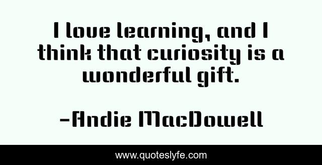 This page presents the quote "I love learning, and I think that curiosity is a wonderful gift.". Author of this quote is Andie MacDowell. This quote is about curiosity, love, gift, affection,.
