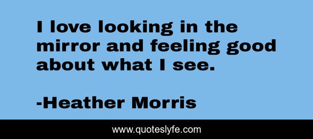 This page presents the quote "I love looking in the mirror and feeling good about what I see.". Author of this quote is Heather Morris. This quote is about looking, good, mirror,.