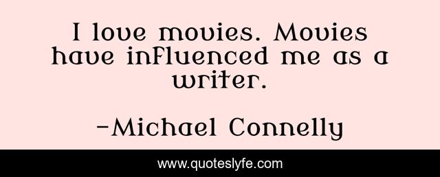 This page presents the quote "I love movies. Movies have influenced me as a writer.". Author of this quote is Michael Connelly. This quote is about movies, michael-connelly,.