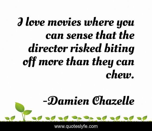 This page presents the quote "I love movies where you can sense that the director risked biting off more than they can chew.". Author of this quote is Damien Chazelle. This quote is about director, love, affection,.