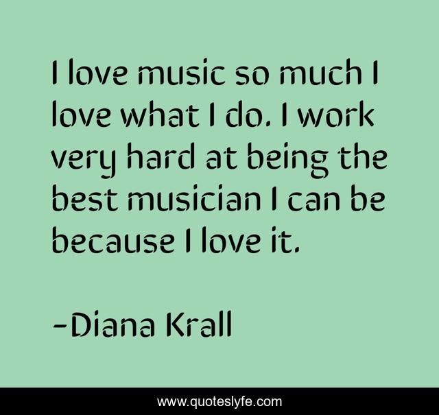 This page presents the quote "I love music so much I love what I do. I work very hard at being the best musician I can be because I love it.". Author of this quote is Diana Krall. This quote is about work, love, best, affection,.