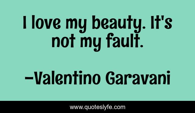 This page presents the quote "I love my beauty. It's not my fault.". Author of this quote is Valentino Garavani. This quote is about fault, love, affection, i love,.