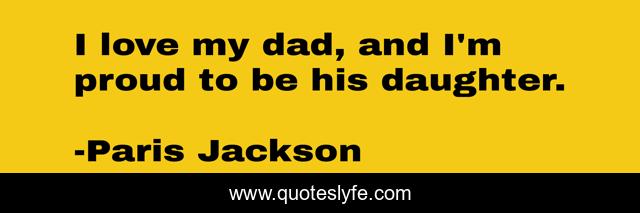 This page presents the quote "I love my dad, and I'm proud to be his daughter.". Author of this quote is Paris Jackson. This quote is about love, proud, daughter, affection,.