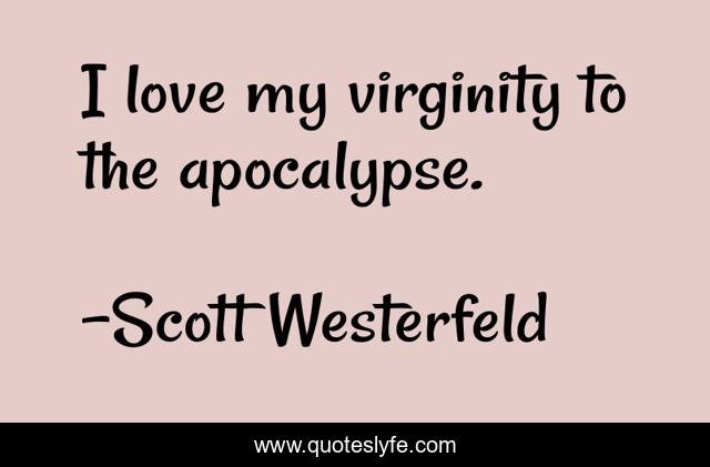 "Scott Westerfeld Quotes." Quoteslyfe.com, 2025. Mon. 08 Dec. 2025. <https://www.quoteslyfe.com/quote/I-love-my-virginity-to-the-apocalypse-281314>.