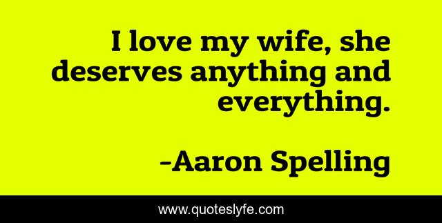 This page presents the quote "I love my wife, she deserves anything and everything.". Author of this quote is Aaron Spelling. This quote is about love, she, affection, wife,.