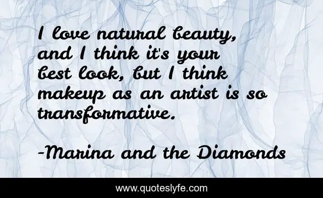 This page presents the quote "I love natural beauty, and I think it's your best look, but I think makeup as an artist is so transformative.". Author of this quote is Marina and the Diamonds. This quote is about beauty, best, artist,.
