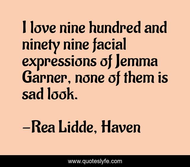 This page presents the quote "I love nine hundred and ninety nine facial expressions of Jemma Garner, none of them is sad look.". Author of this quote is Rea Lidde, Haven. This quote is about expression, sad,.
