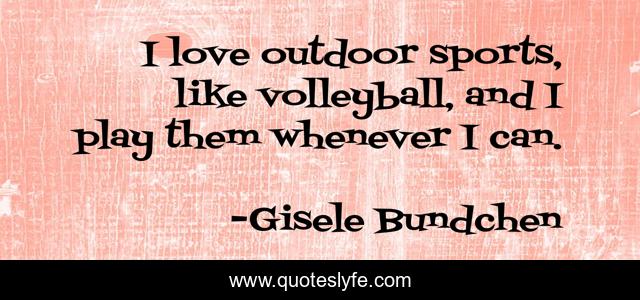 This page presents the quote "I love outdoor sports, like volleyball, and I play them whenever I can.". Author of this quote is Gisele Bundchen. This quote is about play, love, i can, affection,.