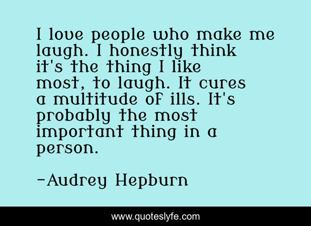 This page presents the quote "I love people who make me laugh. I honestly think it's the thing I like most, to laugh. It cures a multitude of ills. It's probably the most important thing in a person.". Author of this quote is Audrey Hepburn. .