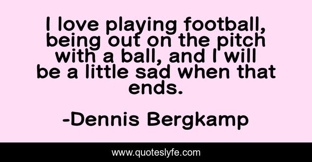 This page presents the quote "I love playing football, being out on the pitch with a ball, and I will be a little sad when that ends.". Author of this quote is Dennis Bergkamp. This quote is about little, football, love, affection,.