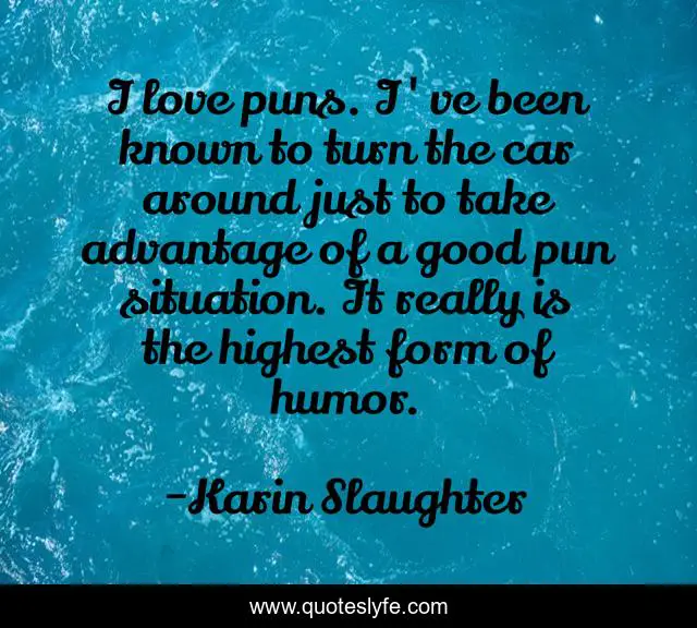 "Karin Slaughter Quotes." Quoteslyfe.com, 2025. Sat. 06 Dec. 2025. <https://www.quoteslyfe.com/quote/I-love-puns-I-ve-been-known-285006>.