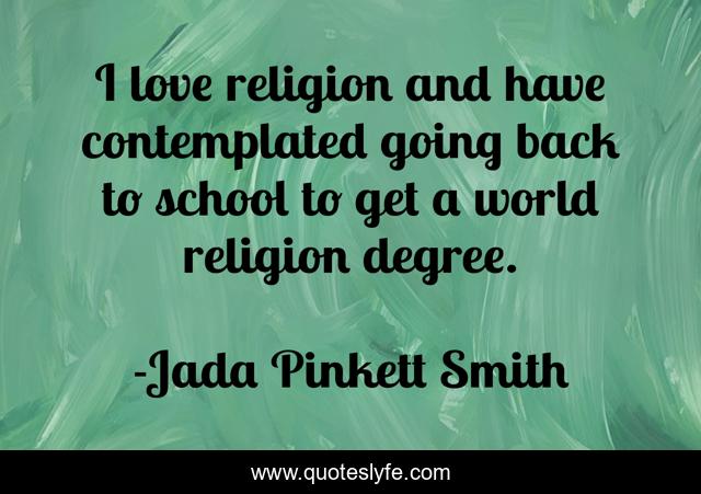 This page presents the quote "I love religion and have contemplated going back to school to get a world religion degree.". Author of this quote is Jada Pinkett Smith. This quote is about world, school, love, affection,.