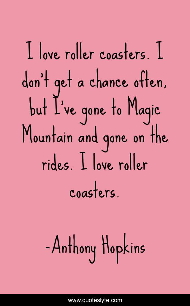 This page presents the quote "I love roller coasters. I don't get a chance often, but I've gone to Magic Mountain and gone on the rides. I love roller coasters.". Author of this quote is Anthony Hopkins. This quote is about mountain, magic, affection, love,.