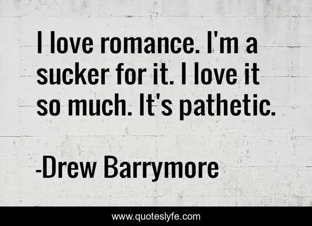 This page presents the quote "I love romance. I'm a sucker for it. I love it so much. It's pathetic.". Author of this quote is Drew Barrymore. This quote is about sucker, love, pathetic, affection,.