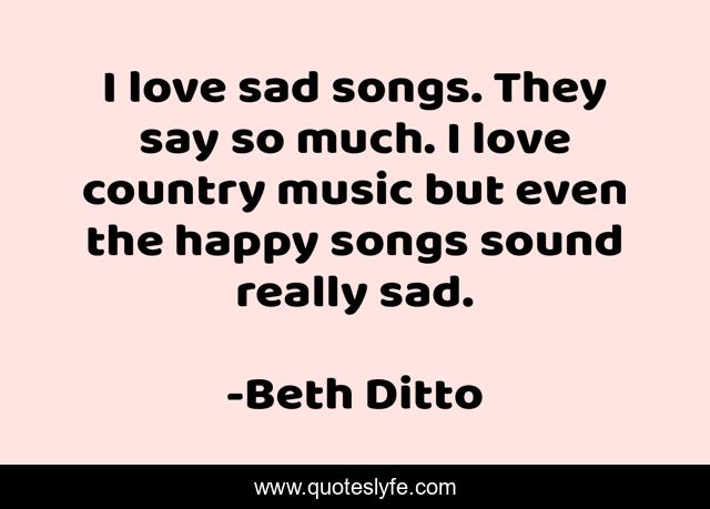 This page presents the quote "I love sad songs. They say so much. I love country music but even the happy songs sound really sad.". Author of this quote is Beth Ditto. This quote is about love, music, affection, happy,.