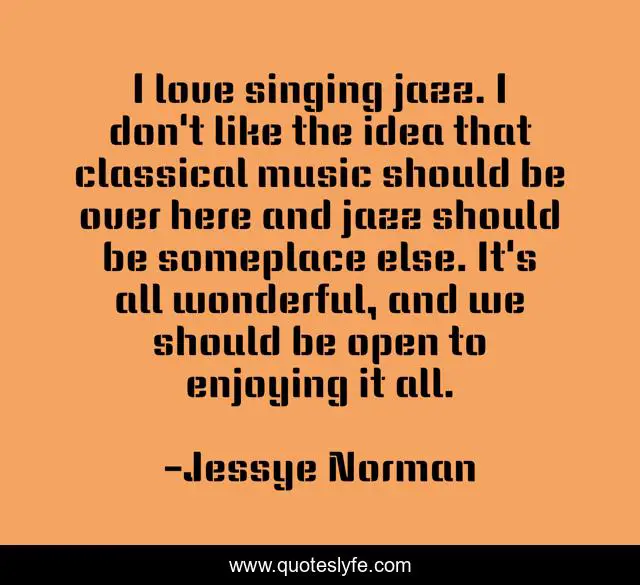 This page presents the quote "I love singing jazz. I don't like the idea that classical music should be over here and jazz should be someplace else. It's all wonderful, and we should be open to enjoying it all.". Author of this quote is Jessye Norman. This quote is about love, jazz, singing, affection,.