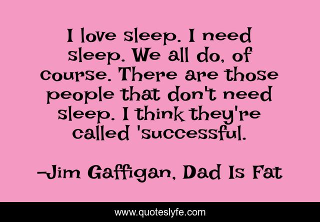 This page presents the quote "I love sleep. I need sleep. We all do, of course. There are those people that don't need sleep. I think they're called 'successful.". Author of this quote is Jim Gaffigan, Dad Is Fat. This quote is about humor, sleep,.