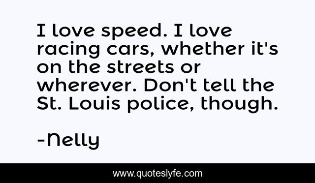 This page presents the quote "I love speed. I love racing cars, whether it's on the streets or wherever. Don't tell the St. Louis police, though.". Author of this quote is Nelly. This quote is about love, speed, police, affection,.