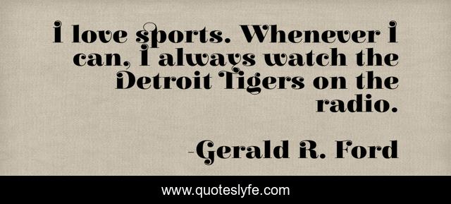 This page presents the quote "I love sports. Whenever I can, I always watch the Detroit Tigers on the radio.". Author of this quote is Gerald R. Ford. This quote is about love, radio, i can, affection,.