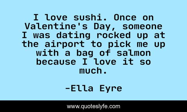 This page presents the quote "I love sushi. Once on Valentine's Day, someone I was dating rocked up at the airport to pick me up with a bag of salmon because I love it so much.". Author of this quote is Ella Eyre. This quote is about me, love, day, affection,.
