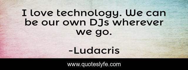 This page presents the quote "I love technology. We can be our own DJs wherever we go.". Author of this quote is Ludacris. This quote is about go, love, wherever, affection,.