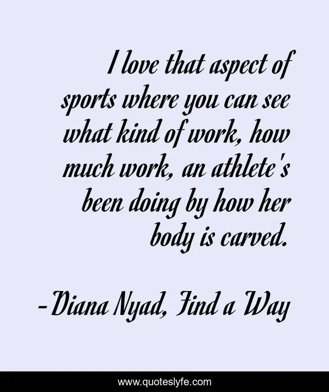 This page presents the quote "I love that aspect of sports where you can see what kind of work, how much work, an athlete's been doing by how her body is carved.". Author of this quote is Diana Nyad, Find a Way. .