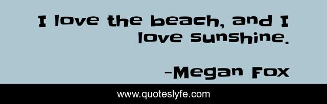 This page presents the quote "I love the beach, and I love sunshine.". Author of this quote is Megan Fox. This quote is about i love, sunshine, beach,.