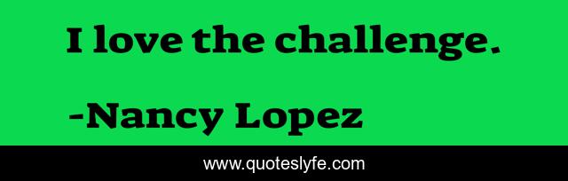 This page presents the quote "I love the challenge.". Author of this quote is Nancy Lopez. .