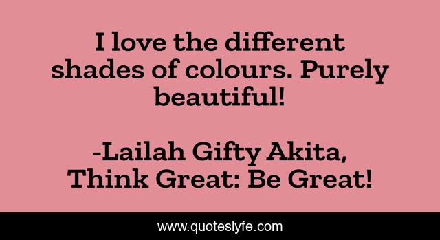 "Lailah Gifty Akita, Think Great: Be Great! Quotes." Quoteslyfe.com, 2025. Tue. 09 Dec. 2025. <https://www.quoteslyfe.com/quote/I-love-the-different-shades-of-colours-140481>.