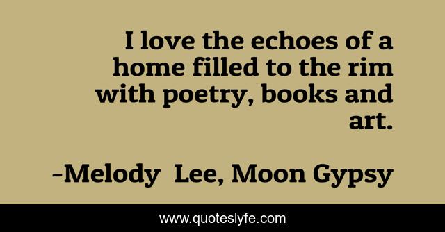 This page presents the quote "I love the echoes of a home filled to the rim with poetry, books and art.". Author of this quote is Melody Lee, Moon Gypsy. This quote is about love, poetry, books, home, art, affection,.