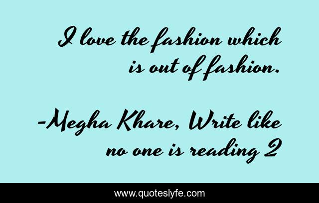 "Megha Khare, Write like no one is reading 2 Quotes." Quoteslyfe.com, 2025. Sun. 07 Dec. 2025. <https://www.quoteslyfe.com/quote/I-love-the-fashion-which-is-out-234468>.